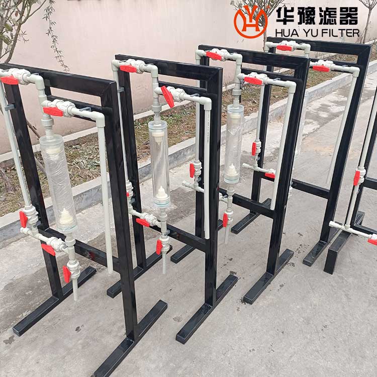 實(shí)驗(yàn)室用交換柱:一般用玻璃制造,柱長度和柱直徑之比(L/D)大約為10~30,柱上端一般裝塞子,下端是用燒結(jié)的玻璃砂板,也可以用玻璃毛、帶孔的瓷板、不銹鋼板,***的塑料網(wǎng)、布、玻璃布等作為離子交換柱的支座。