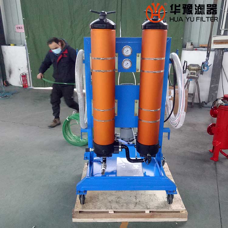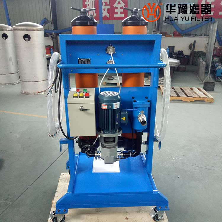 普通濾油機(jī) 由初濾器、油泵和過濾裝置組成。初濾器為一筒狀金屬網(wǎng),阻止不純凈油中較大的固體顆粒進(jìn)入油泵。油泵通常為齒輪泵,輸送不純凈油進(jìn)入過濾裝置。過濾裝置為一小型手工壓緊的板框壓濾機(jī),用***濾紙作過濾介質(zhì)。不純凈油在油泵壓力作用下進(jìn)入板框壓濾機(jī),透過濾紙成為濾清油。油中的固體雜質(zhì)被截留在濾紙表面,少量的水分被濾紙的毛細(xì)孔吸收。過濾壓力通常不大于0.3兆帕。當(dāng)濾紙表面沉積雜質(zhì)太多,過濾壓力升高到0.35兆帕?xí)r,或當(dāng)濾紙吸收的水分接近飽和,濾清油中殘留的水分***降低時,應(yīng)停機(jī)更換濾紙。油的粘度較高時,可預(yù)熱以降低粘度后再行過濾。這種濾油機(jī)只能除去固體雜質(zhì)和少量水分,適用于一般電器用油和潤滑油的提純。當(dāng)油中含水分和雜質(zhì)過多時,須經(jīng)預(yù)處理后再送入濾油機(jī)。普通濾油機(jī)的處理量為25~200升/分。過濾裝置的方形濾框有200毫米、250毫米、320毫米、450毫米、630毫米等。濾板和濾框用鑄鐵或---制成。